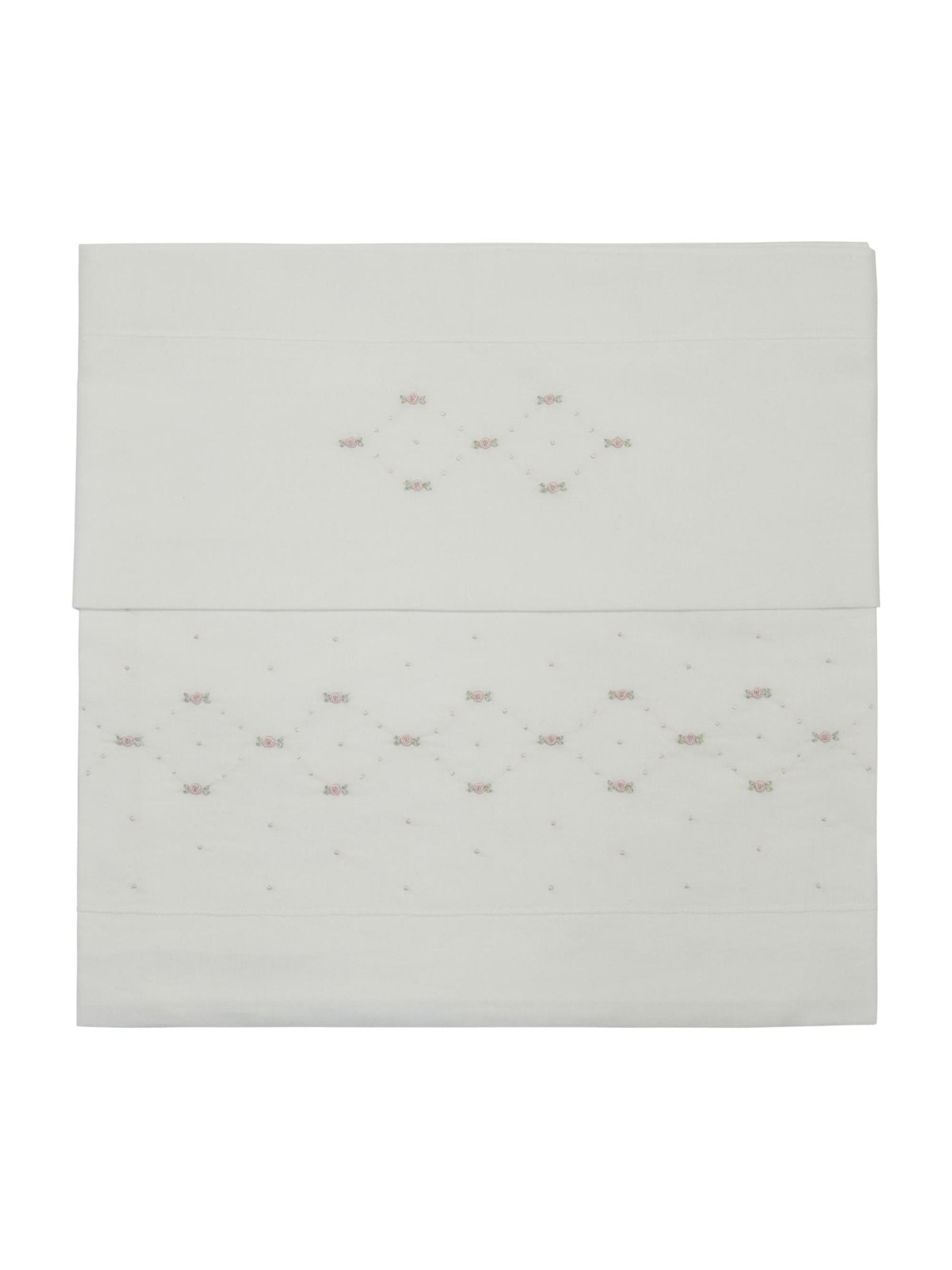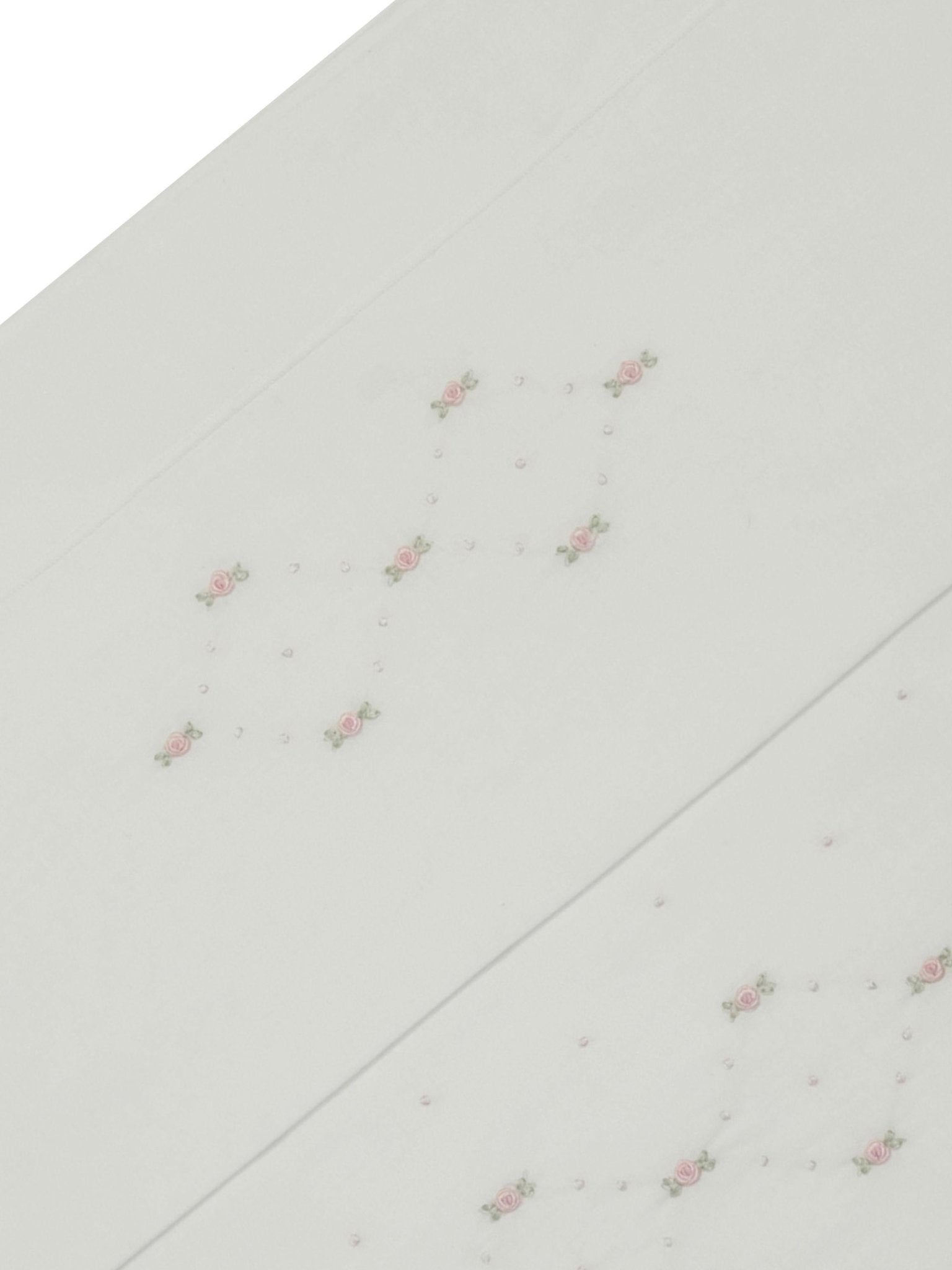 Lenzuola da culla per neonati Mariella Ferrari bianca con ricamo fiori rosa