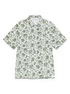 The Paolo Pecora Kids white floral print shirt for boys is available on the RubinoKids.com online store. Made of 100% cotton, it features a white button-up front and short sleeves. Available in various sizes, it is part of the Paolo Pecora Kids Spring/Summer 2025 collection and is available for immediate shipment with delivery within 24-48 hours in Italy.