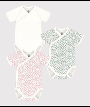 Set di tre body per neonati Petit Bateau bianco con maniche corte - Rubino Kids