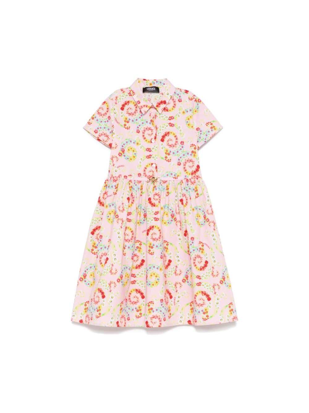 Versace Kids pink floral print dress for girls with hidden side fastening.