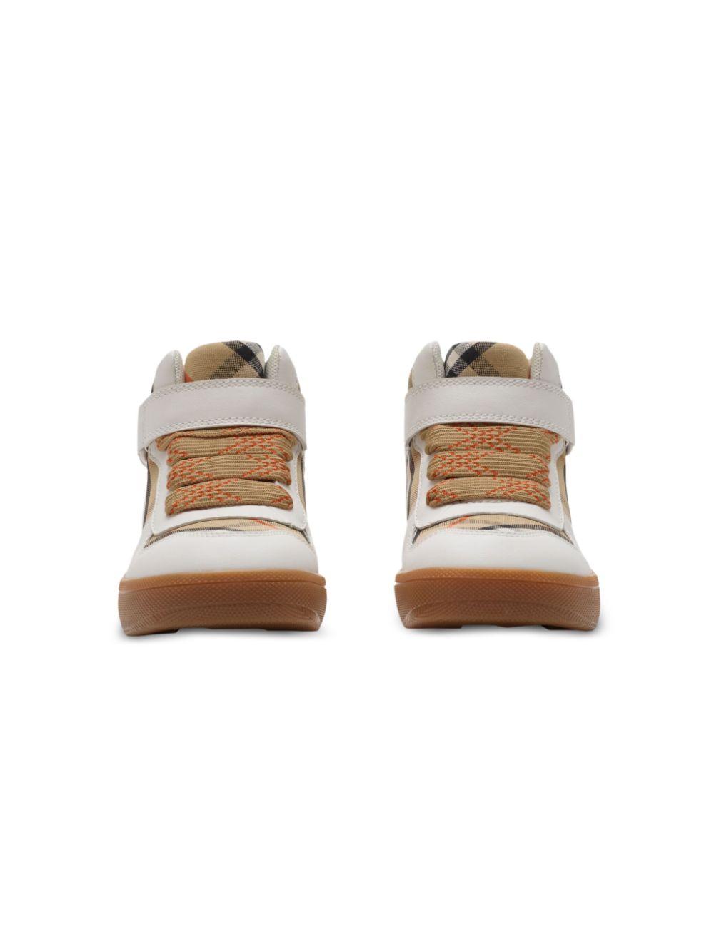 Burberry Kids beige checked high-top sneakers for girls