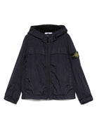 Stone Island Junior blue jacket with Compass appliqué for boys with elasticated hems