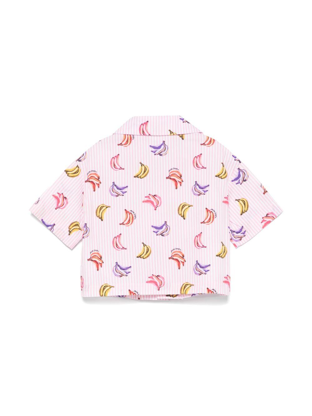 Palm Angels Kids pink banana print shirt for girls with ruffled trim