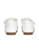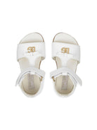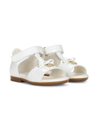 The Dolce & Gabbana Kids Sandals with Logo Plaque is available on the online store RubinoKids.com. Made of 100% calfskin, these sandals feature a polished finish, a gold-tone logo plaque, a bow detail, a velcro closure, an open toe, a leather insole with logo, and a flat rubber sole. Available in various sizes, they are part of the Dolce & Gabbana Kids Spring/Summer 2025 collection and are available for immediate shipment with delivery within 24-48 hours in Italy.