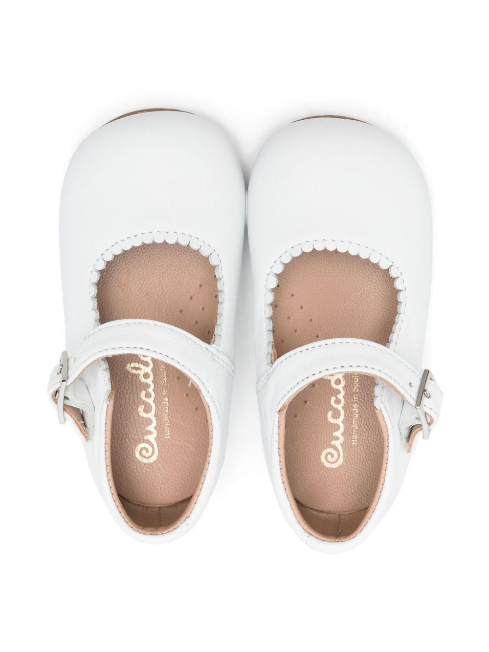 Eli1957 white leather ballerinas for girls with buckle strap
