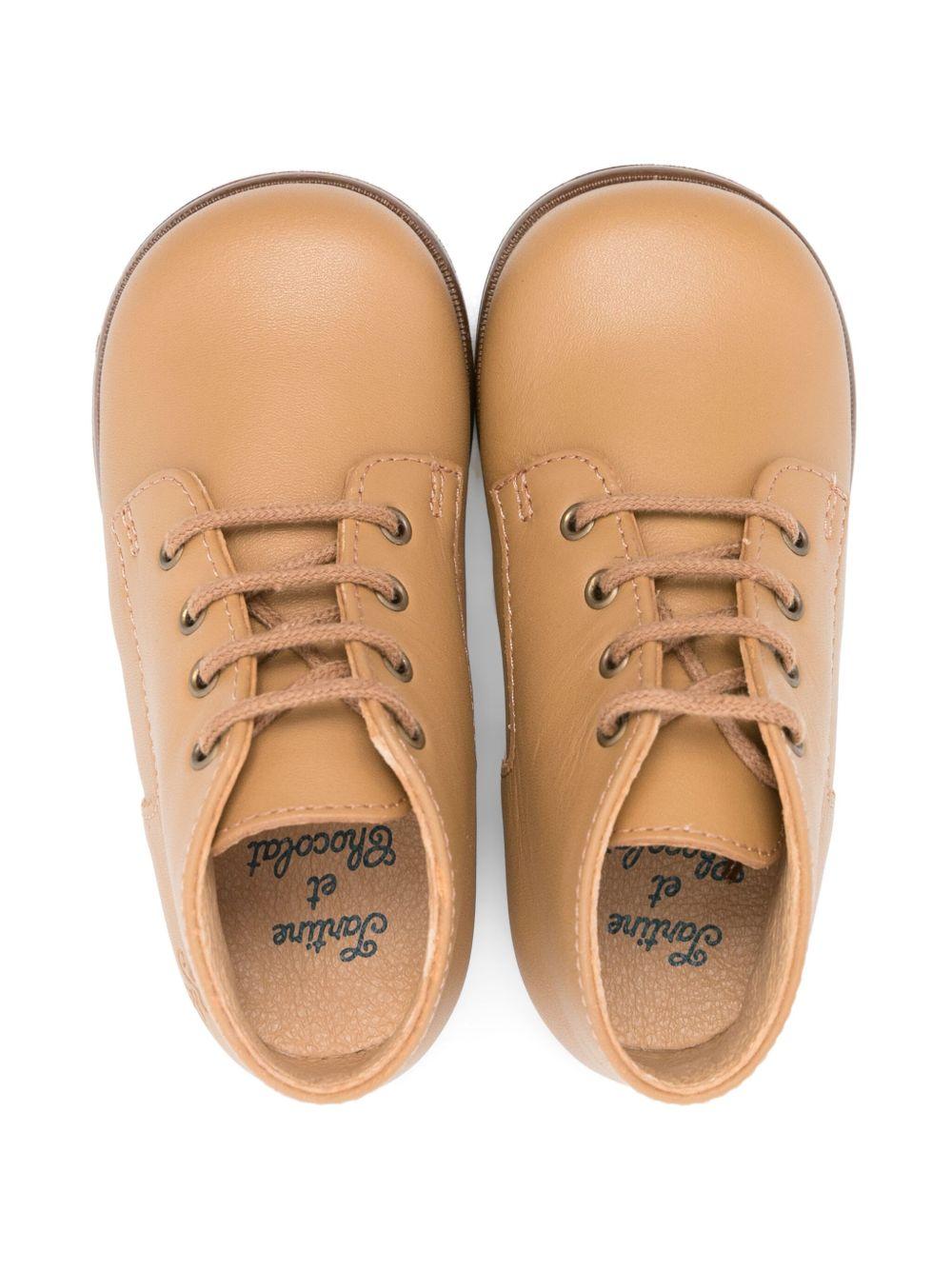 Tartine Et Chocolat camel brown lace-up leather boots for babies
