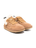 Douuod Kids beige suede sneakers with faux fur trim