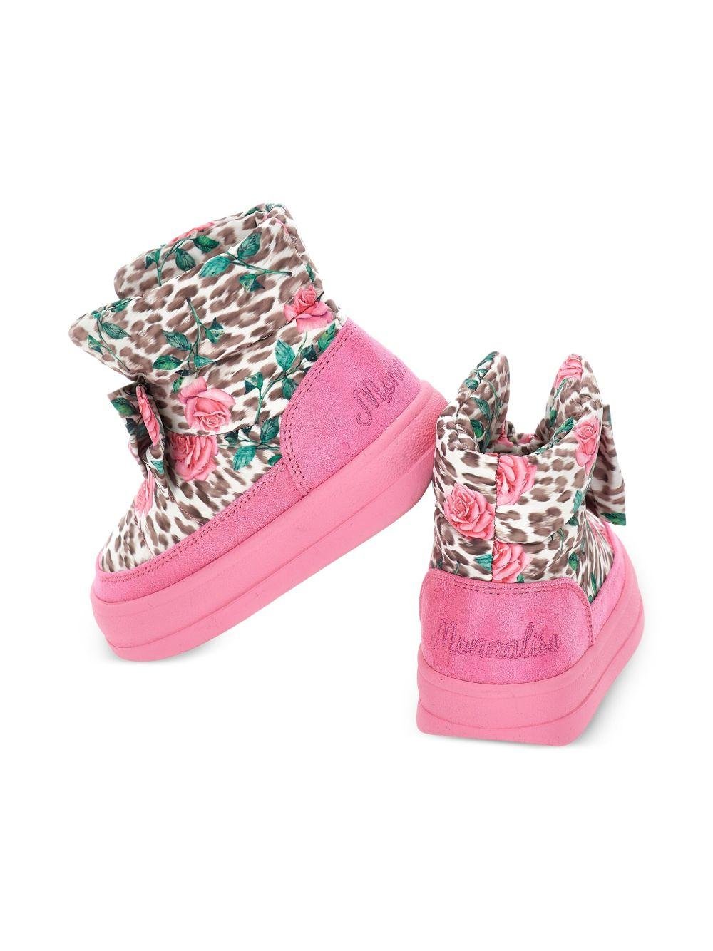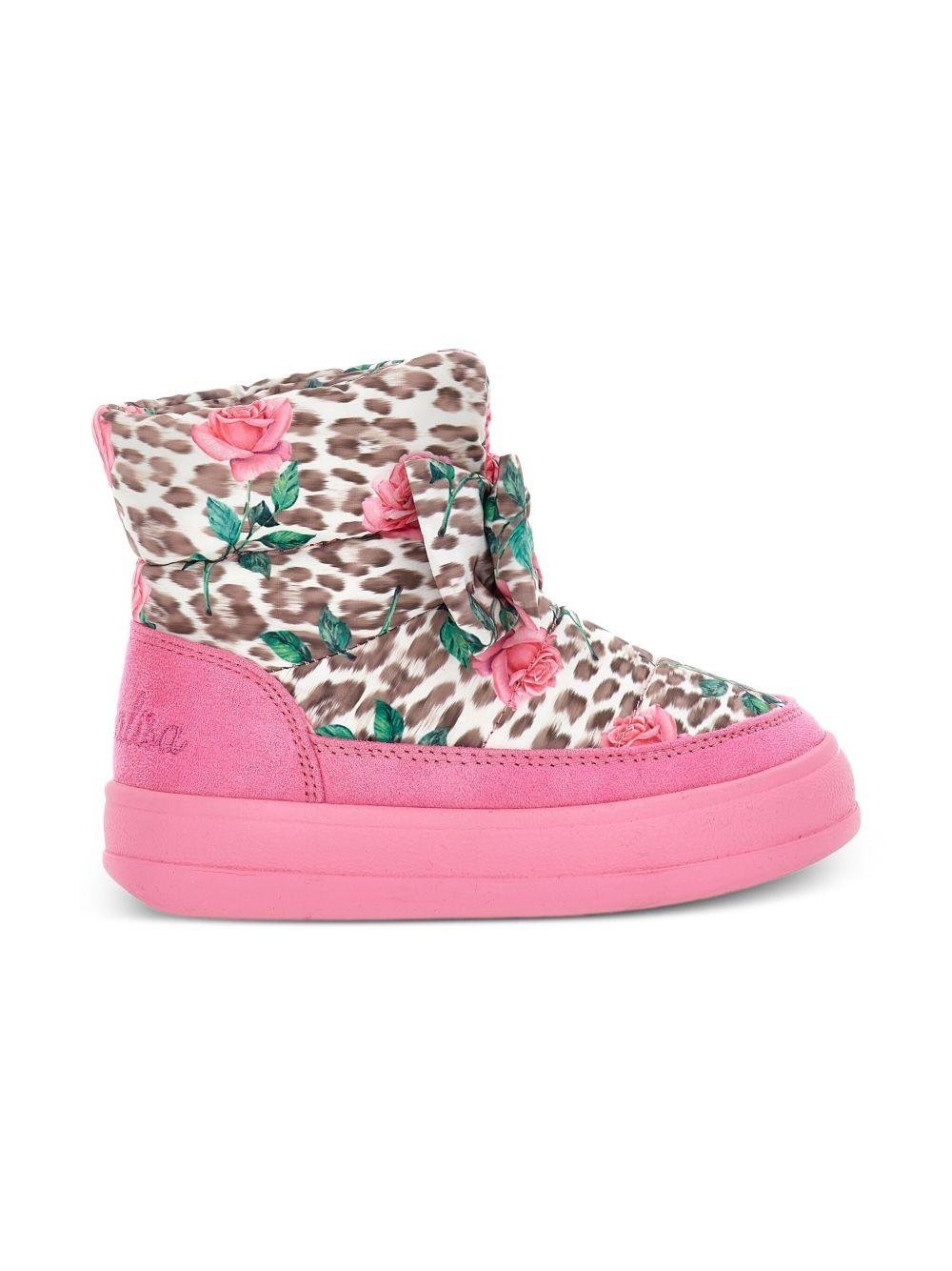 The Monnalisa Animal Print Snow Boots for Girls with Floral Print is available on the RubinoKids.com online store. Made of 100% cotton, they feature an animal print, a slip-on design, a bow detail, an animal print, and a round toe. Available in various sizes, they are part of the Donsje Fall/Winter 2025 collection and are available for 24-48 hour delivery in Italy.
