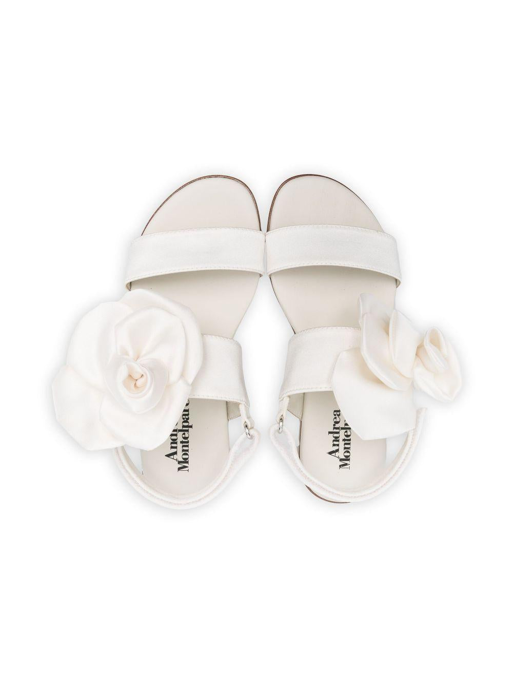 Andrea Montelpare white sandals for girls with flower appliques
