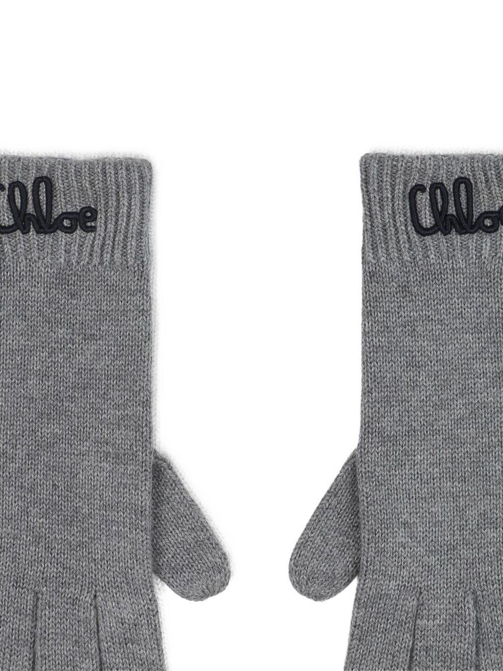 The Chloé Kids gray gloves for girls with embroidered logo is available on the RubinoKids.com online store. Made of 90% organic cotton, 10% lamb's wool. The product features a color