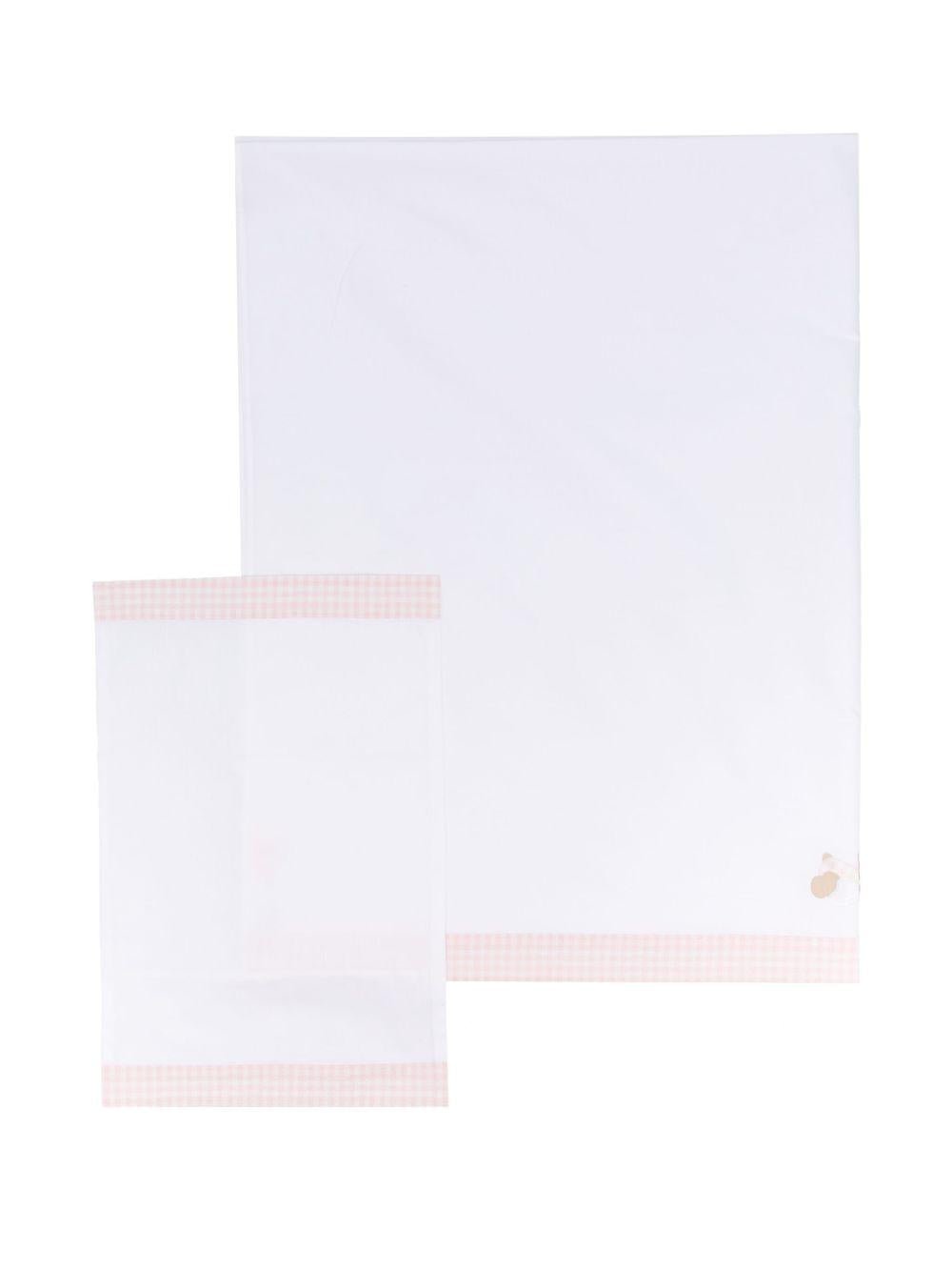 The Il Gufo white baby sheet with logo and finished hem is available on the RubinoKids.com online store. Made of 100% cotton, it features a rectangular design, contrasting trim, and finished hem. It is part of the Il Gufo Spring/Summer 2025 collection and is available for immediate shipment with delivery within 24-48 hours in Italy.
