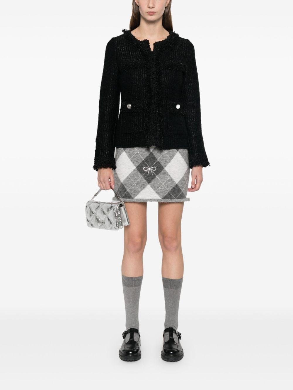The MC2 Saint Barth Chatel women's knitted miniskirt in gray is available on the RubinoKids.com online store. Made of 100% wool, the skirt features a gray/white knitted construction, a diamond pattern, a brushed effect, an elastic waistband, crystal embellishments, a bow detail, a straight hem, and a thigh-length hem. Available in various sizes, it is part of the MC2 Saint Barth Fall/Winter 2024 collection and is available for immediate shipment with delivery within 24-48 hours in Italy.