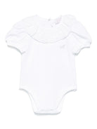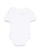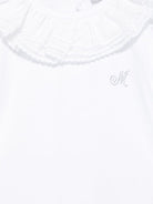 Monnalisa white baby girl bodysuit with rhinestones and ruffled collar