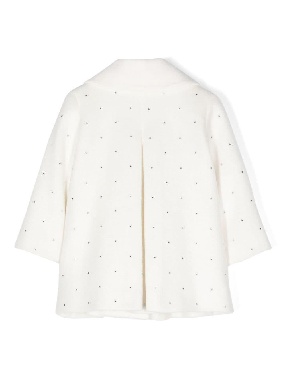 Monnalisa White Rhinestone Coat for Baby with Round Collar
