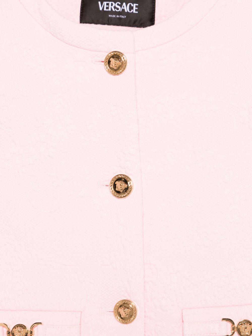 Versace Kids pink floral jacquard jacket for girls with long sleeves