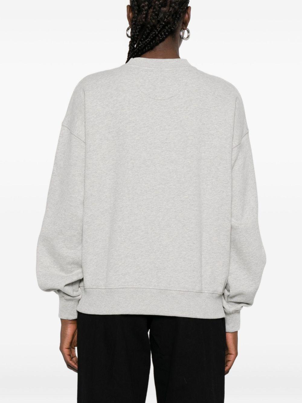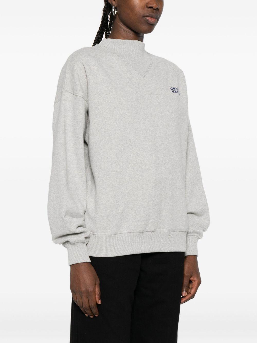 The New Society women's gray sweatshirt with contrasting logo detail is available on the RubinoKids.com online store. Made of 100% cotton, it features a gray turtleneck, long sleeves, ribbed cuffs, a ribbed hem, and a contrasting logo detail. Available in various sizes, it is part of the New Society Fall/Winter 2025 collection and is available for 24-48 hour delivery in Italy.