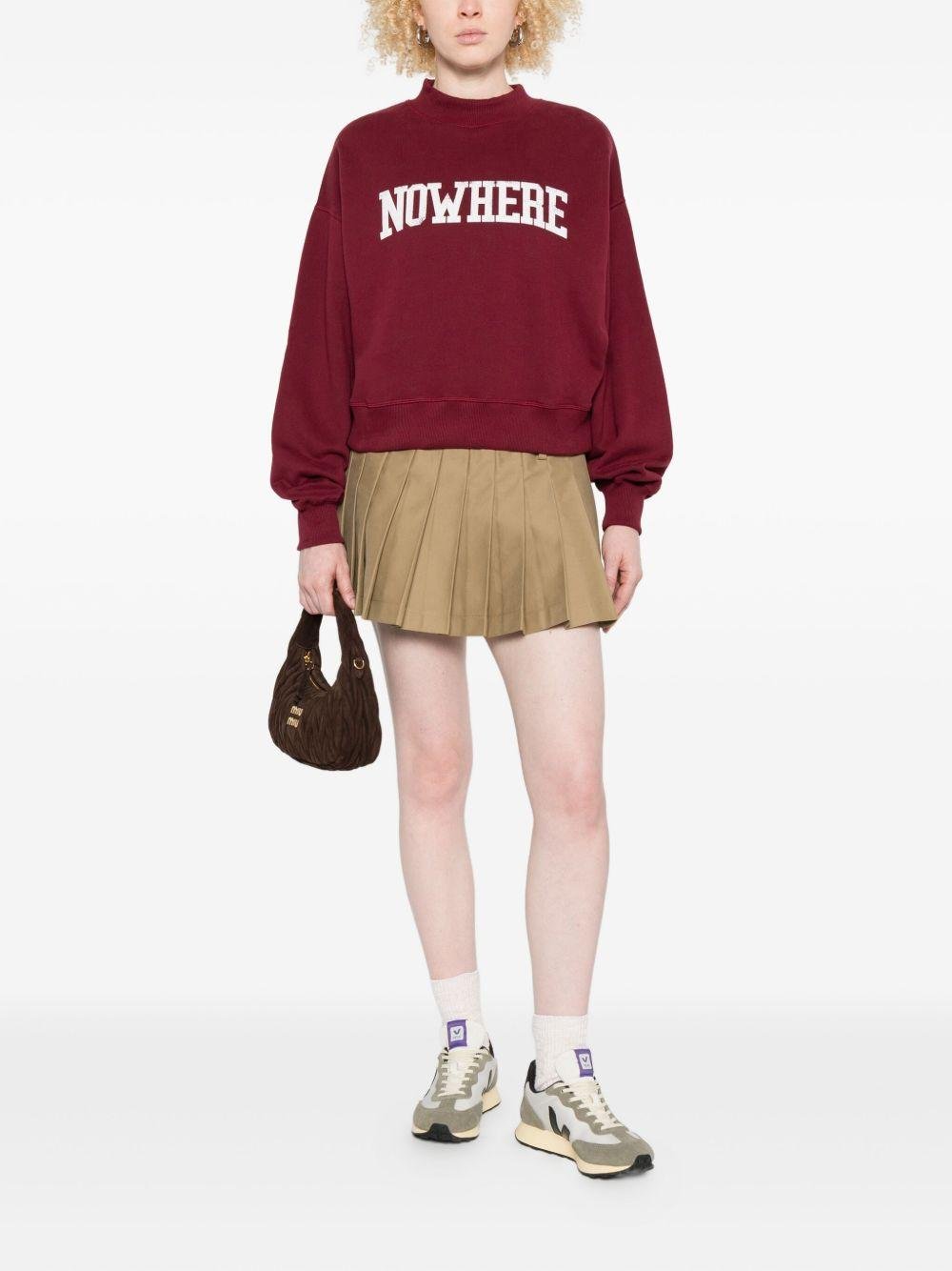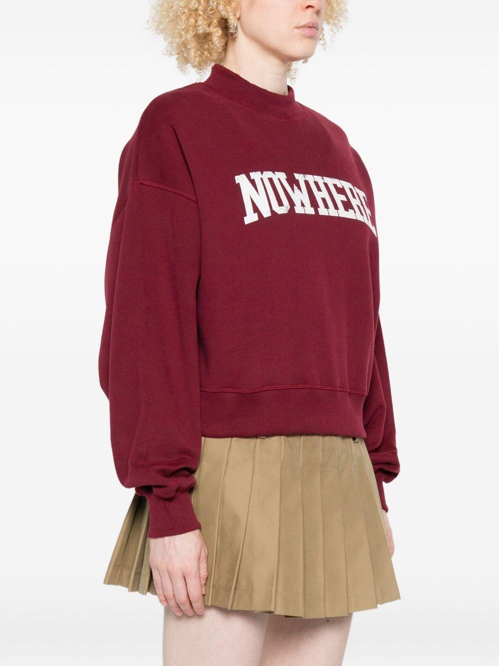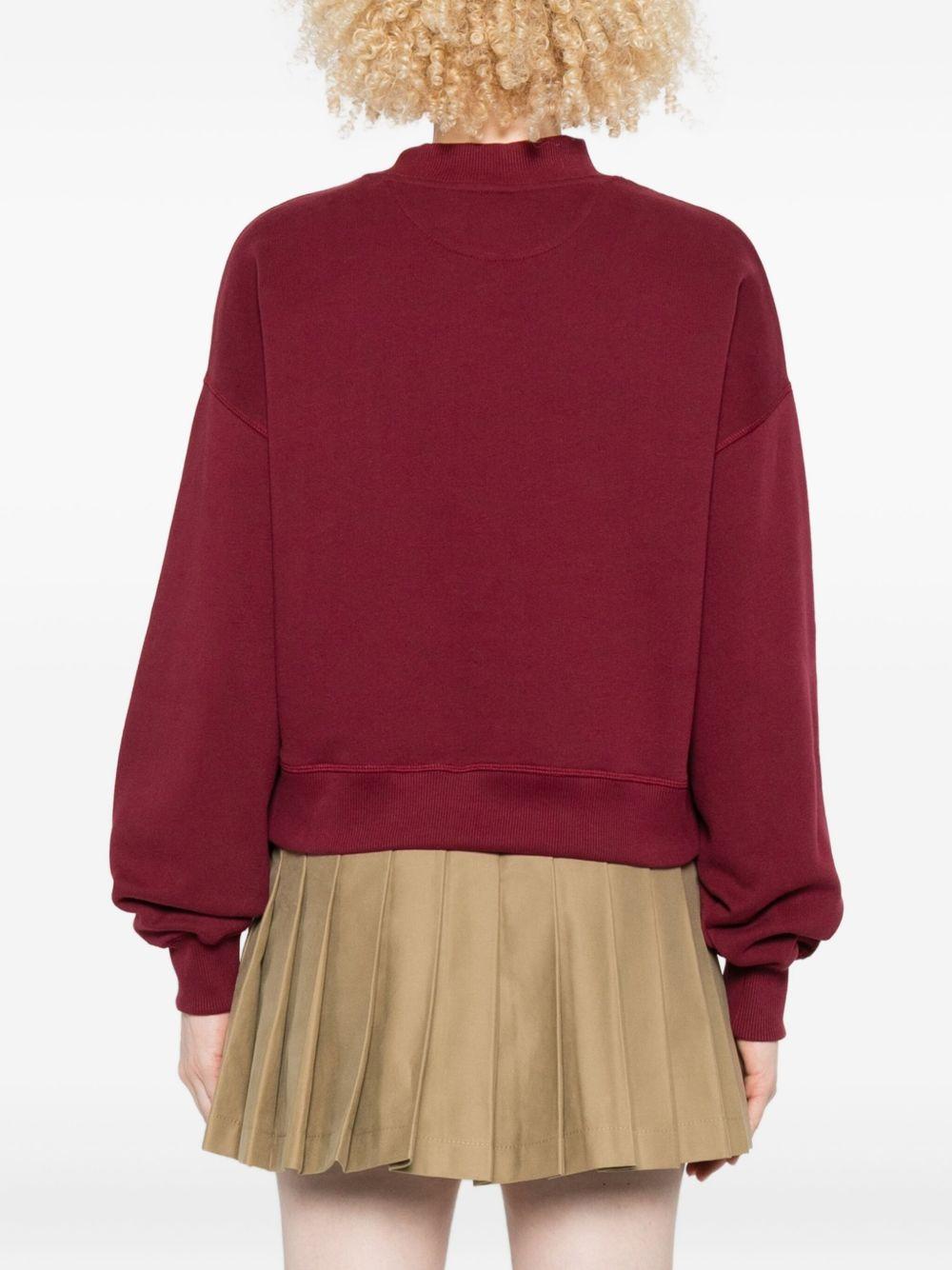 The New Society women's red sweatshirt with graphic print is available on the RubinoKids.com online store. Made of 100% cotton, it features a red crew neck, ribbed cuffs, and a graphic print. Available in various sizes, it is part of the New Society Fall/Winter 2025 collection and is available for 24-48 hour delivery in Italy.