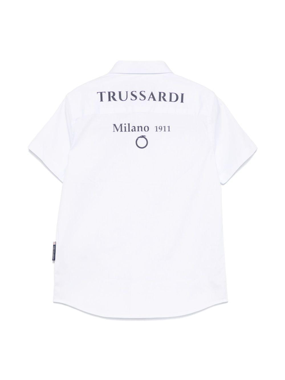 Trussardi Junior blue shirt for boys with print on the bottom and front button placket