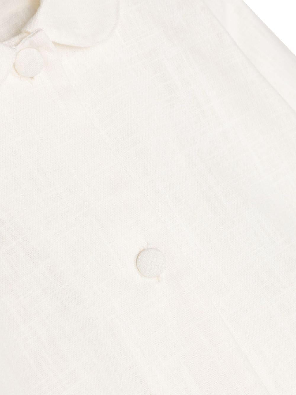 The JESURUM BABY Hydrangea Midi Coat is available on the RubinoKids.com online store. Made of 100% ramie (natural, plant-based), it features a front button closure, short sleeves, and a straight midi hem. Available in various sizes, it is part of the JESURUM BABY Spring/Summer 2024 collection and is available for immediate shipment with delivery within 24-48 hours in Italy.