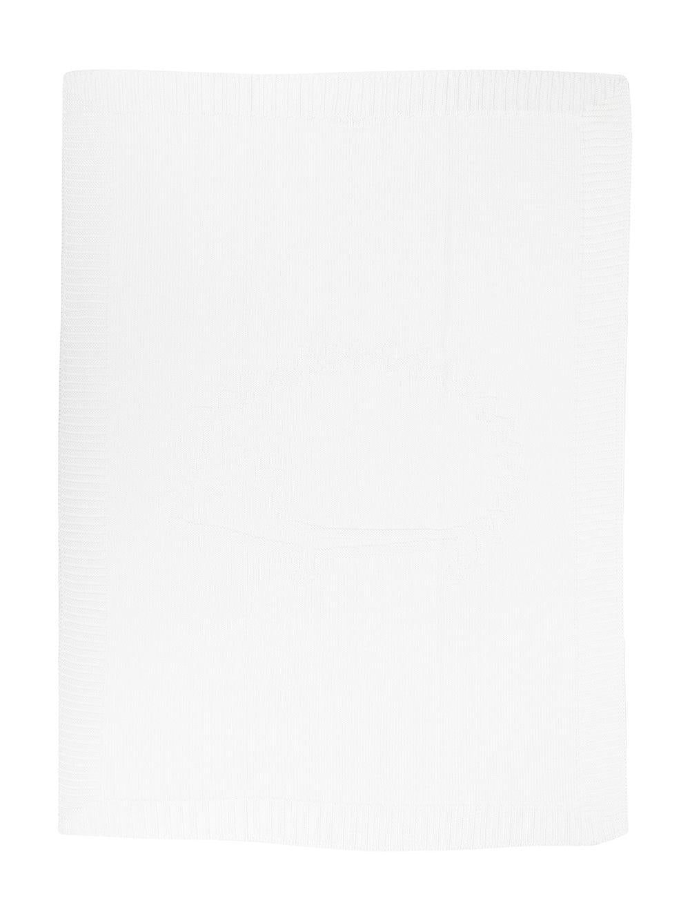 The Tartine Et Chocolat baby blanket in light blue with embroidery is available on the RubinoKids.com online store. Made of 90% cotton and 10% cashmere, it features a white color, finished hem, and ribbed detailing. It is part of the Tartine Et Chocolat Fall/Winter 2025 collection and is available for immediate shipment with delivery within 24-48 hours in Italy.