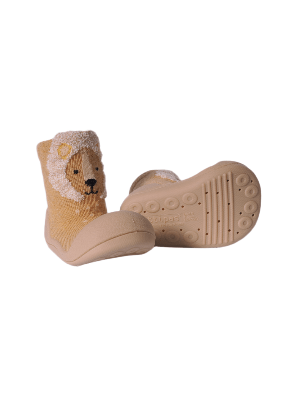The Attipas orange baby first steps shoes with embroidered lion motif are available on the RubinoKids.com online store. Made of 100% cotton, they are orange, feature an embroidered lion motif, and a high leg. Available in various sizes, they are part of the Attipas Fall/Winter 2025 collection and are available for 24-48 hour delivery in Italy.