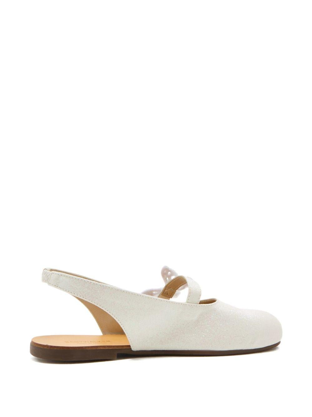 The BabyWalker white ballet flats for girls with a strap at the back are available on the RubinoKids.com online store. Made of 100% leather, they feature a white color, butterfly detailing, a strap at the back, and a closed toe. Available in various sizes, they are part of the BabyWalker Spring/Summer 2026 collection and are available for 24-48 hour delivery in Italy.