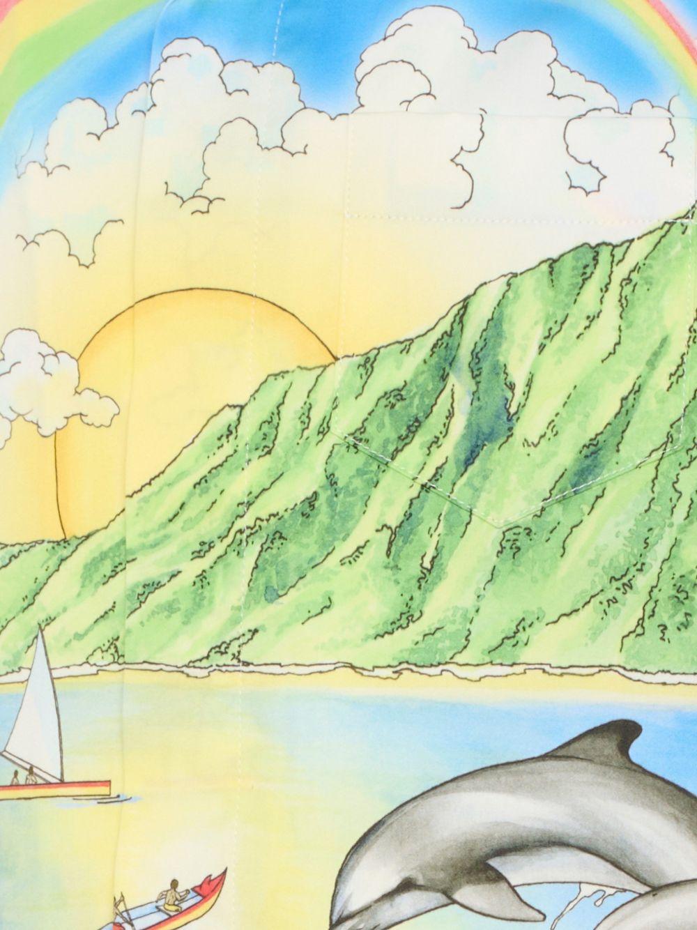 The Casablanca Kids blue graphic print shirt for boys is available on the RubinoKids.com online store. Made of 100% cotton, it features a blue graphic print, short sleeves, a pointed collar, a chest pocket, and a button closure. Available in various sizes, it is part of the Casablanca Kids Spring/Summer 2026 collection and is available for immediate shipment with delivery within 24-48 hours in Italy.