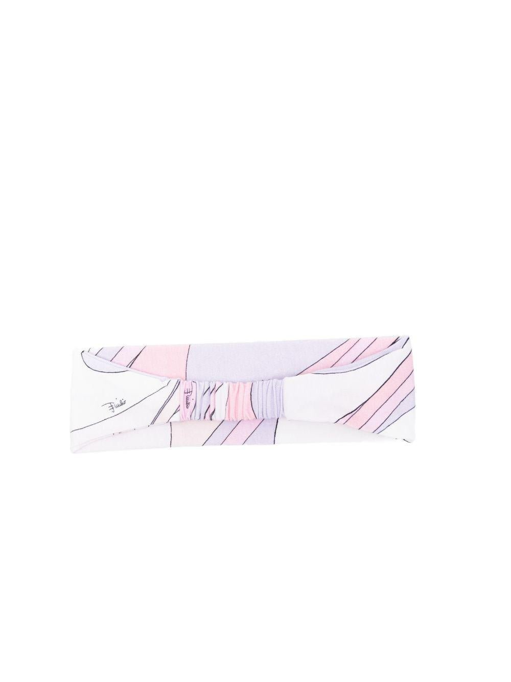 The Emilio Pucci Junior white baby headband with abstract print is available on the RubinoKids.com online store. Made of 95% cotton, 5% elastane, it features a white/multicolor color scheme, an abstract print, and elasticated detail. Available in various sizes, it is part of the Emilio Pucci Junior Spring/Summer 2026 collection and is available for immediate shipment with delivery within 24-48 hours in Italy.