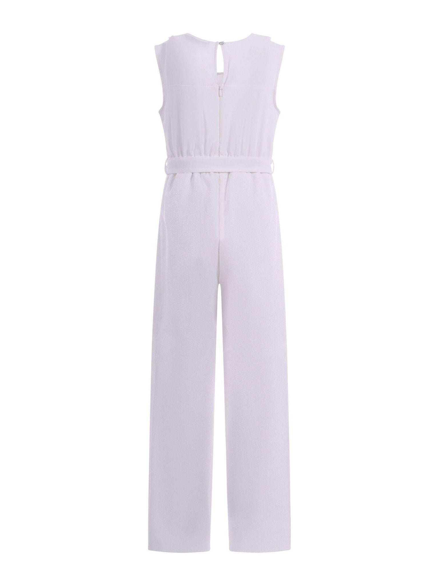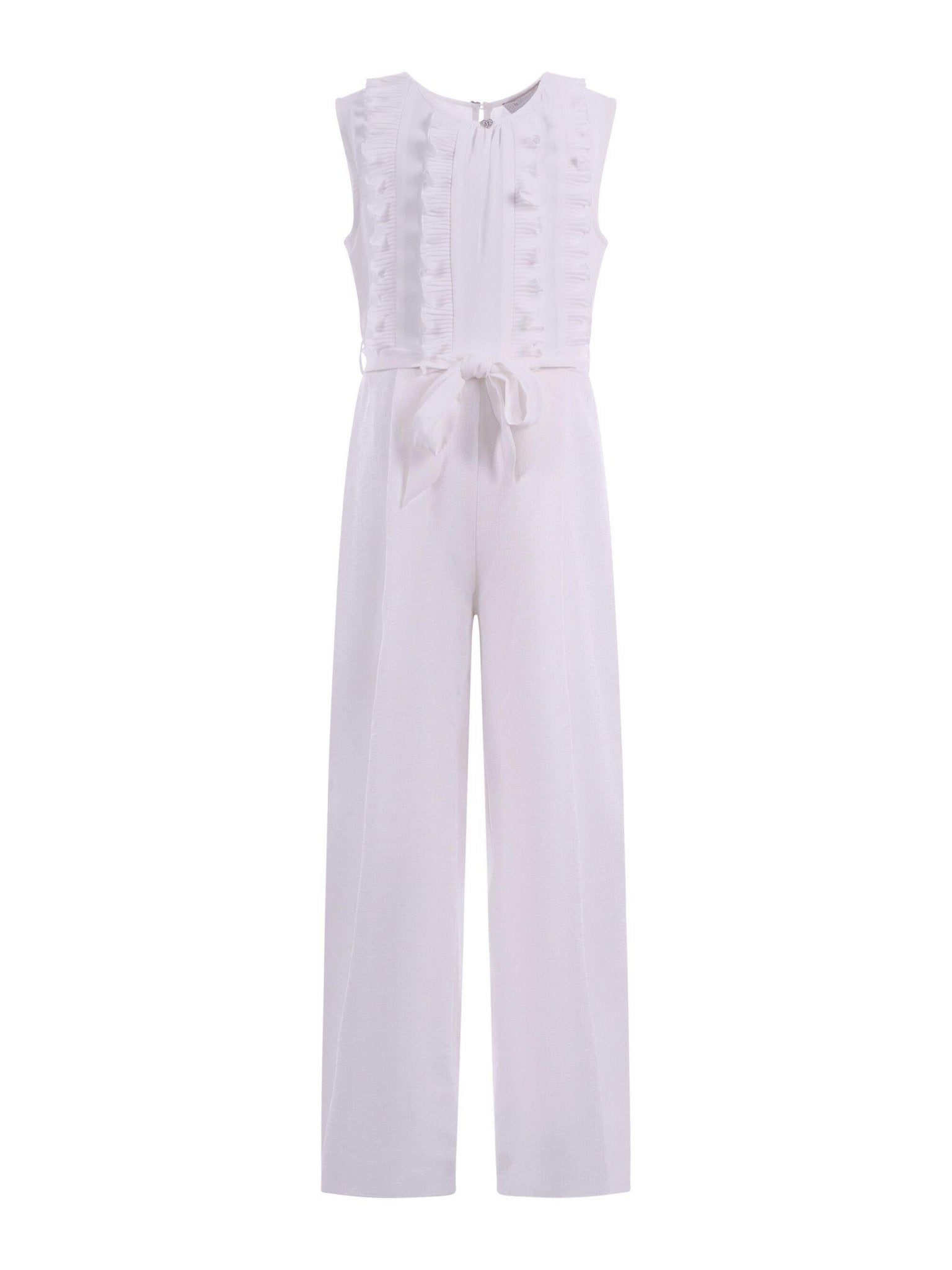 Monnalisa white jumpsuit dress for girls with ruffles and belt