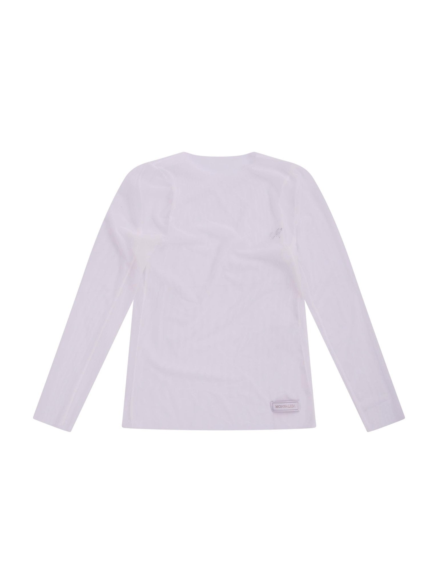 The Monnalisa white crew neck top for girls is available on the RubinoKids.com online store. Made of 100% cotton, it is white, has long sleeves, and a crew neck. Available in various sizes, it is part of the Monnalisa Spring/Summer 2026 collection and is available for immediate shipment with delivery within 24-48 hours in Italy.