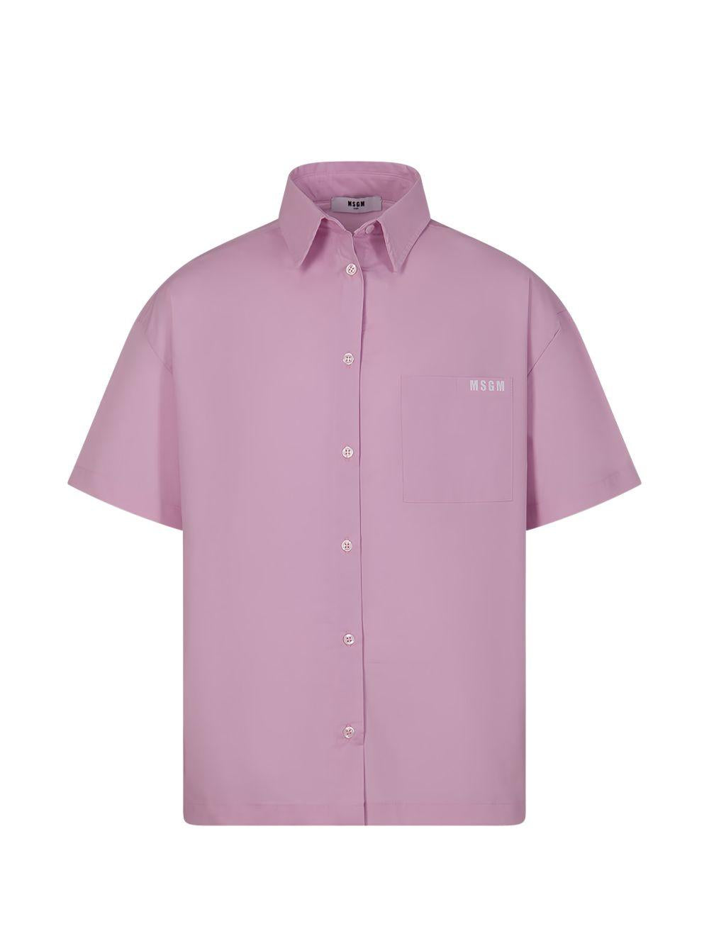 The MSGM Kids pink shirt with pocket for girls is available on the RubinoKids.com online store. Made of 100% fabric, it is pink, has a chest pocket, button closure, short sleeves, and a classic collar. Available in various sizes, it is part of the MSGM Kids Spring/Summer 2026 collection and is available for 24-48 hour delivery in Italy.