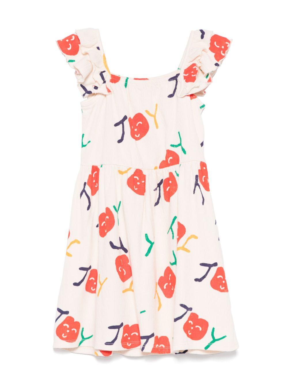 Bobo Choses Smiling beige dress for girls with ruffled details
