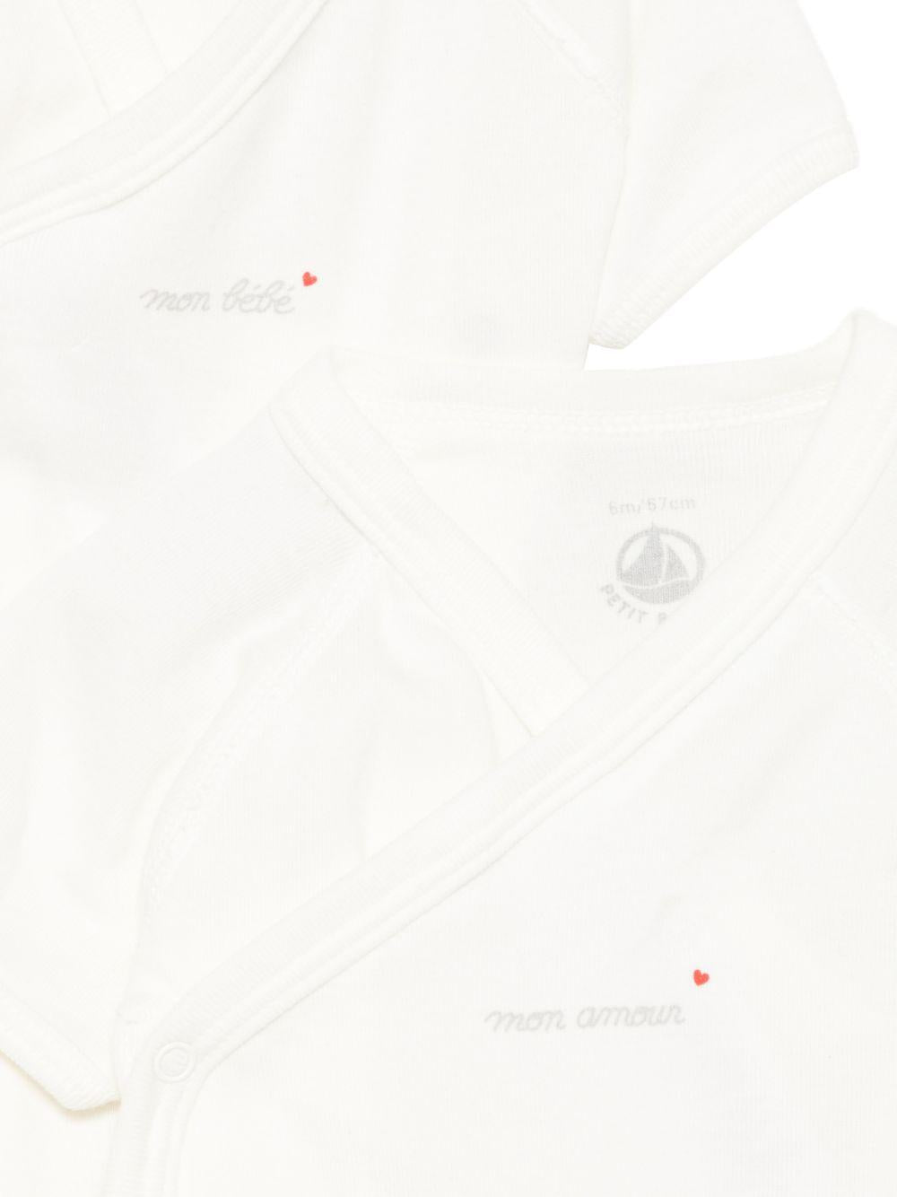 The Petit Bateau set of five white V-neck baby onesies is available on the RubinoKids.com online store. Made of 100% cotton, the white product is a set of five, with short sleeves, snap button closures, and various embroidery. Available in various sizes, it is part of the Petit Bateau Spring/Summer 2026 collection and is available with 24-48 hour delivery in Italy.