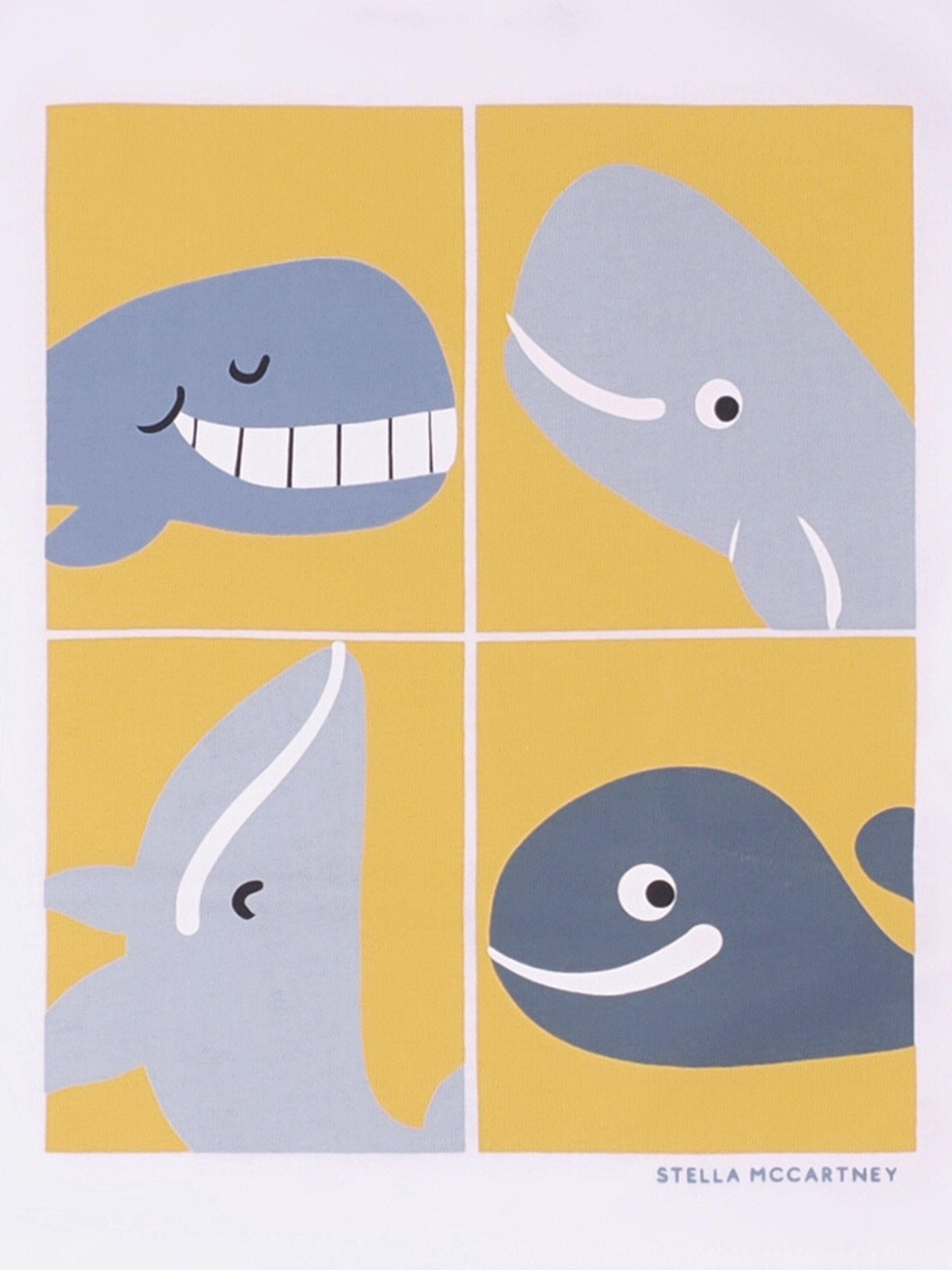 Stella McCartney Kids white baby T-shirt with whale print on the front