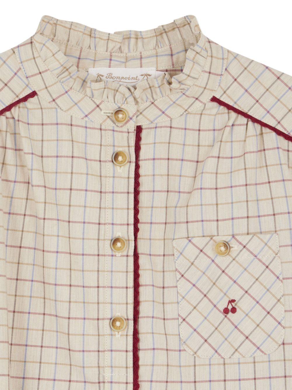 Il prodotto Abito per bambina Bonpoint beige con ruches è disponibile sullo store online RubinoKids.com. Realizzato in Cotone 100%. Il prodotto presenta un colore beige, motivo a quadri, colletto con ruches, chiusura a bottoni, cintura con nodo, dettaglio con ricamo ciliegie. Varie taglie a catalogo, appartiene alla collezione Bonpoint Autunno/Inverno 2025 ed è disponibile in pronta spedizione con consegna in 24/48h per l'Italia.