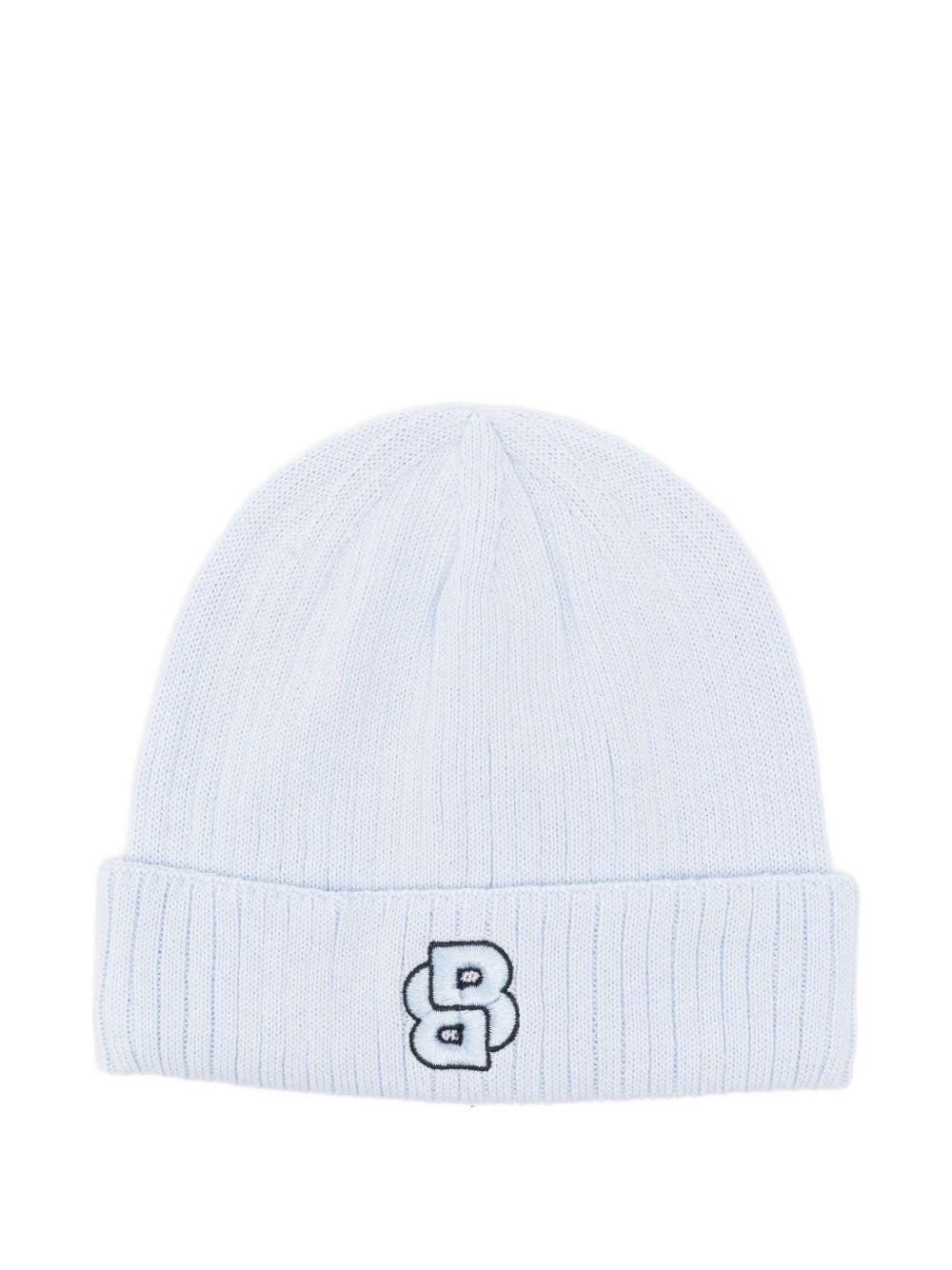 Berretto per neonato Boss Kids azzurro con logo ricamato