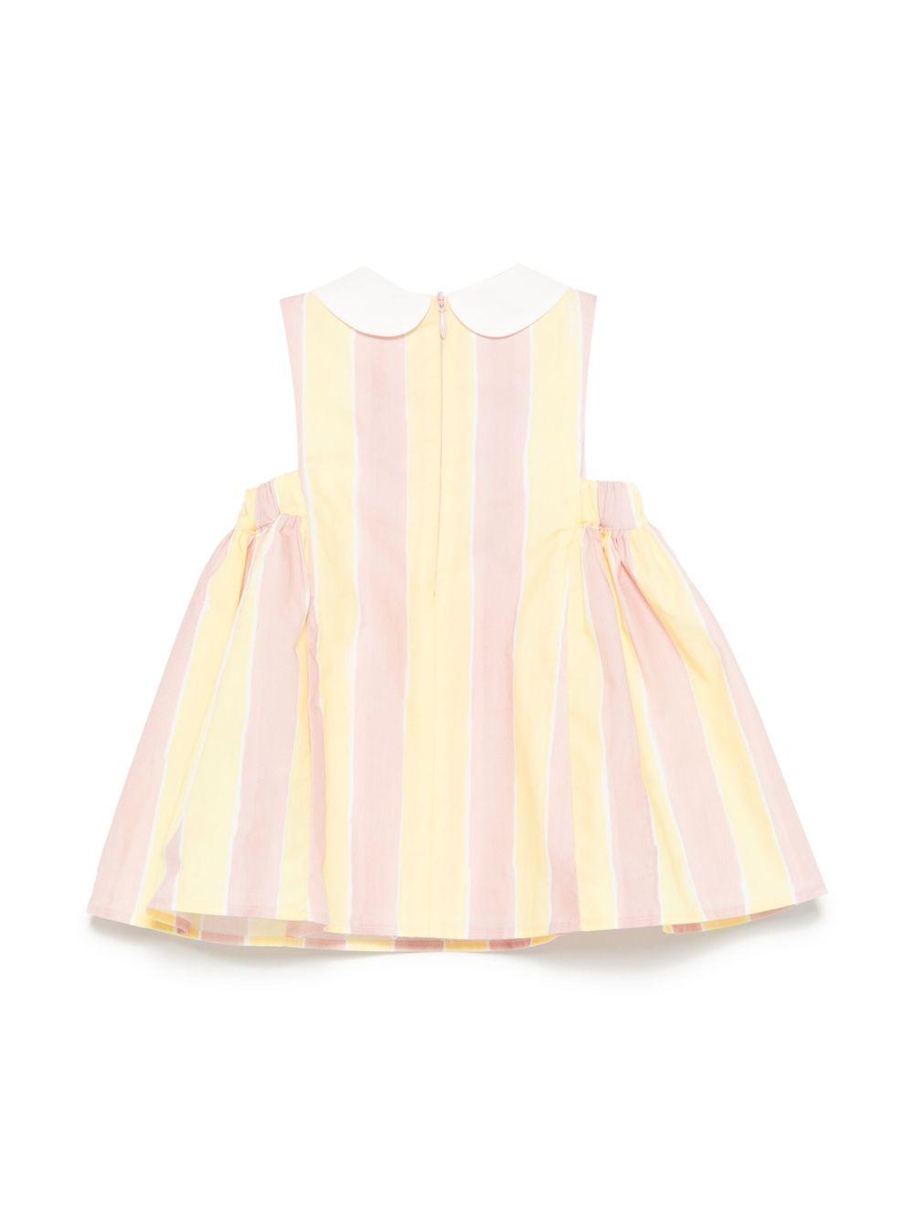 Abito a righe per neonata Il Gufo beige con dettagli plissettati