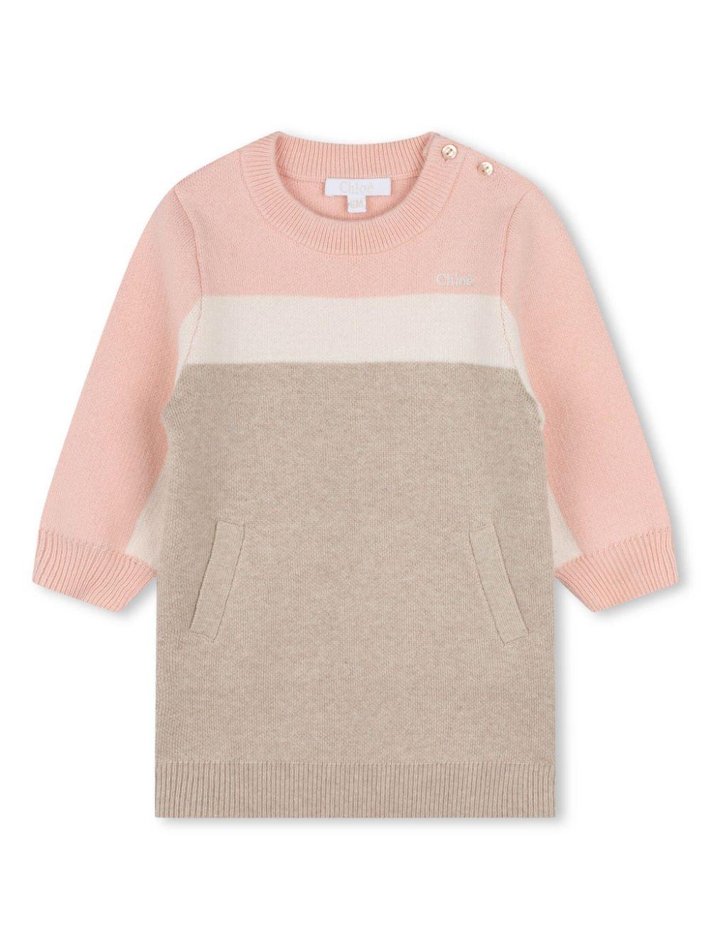 Abito a righe per bambina Chloé Kids azzurro con scollo rotondo