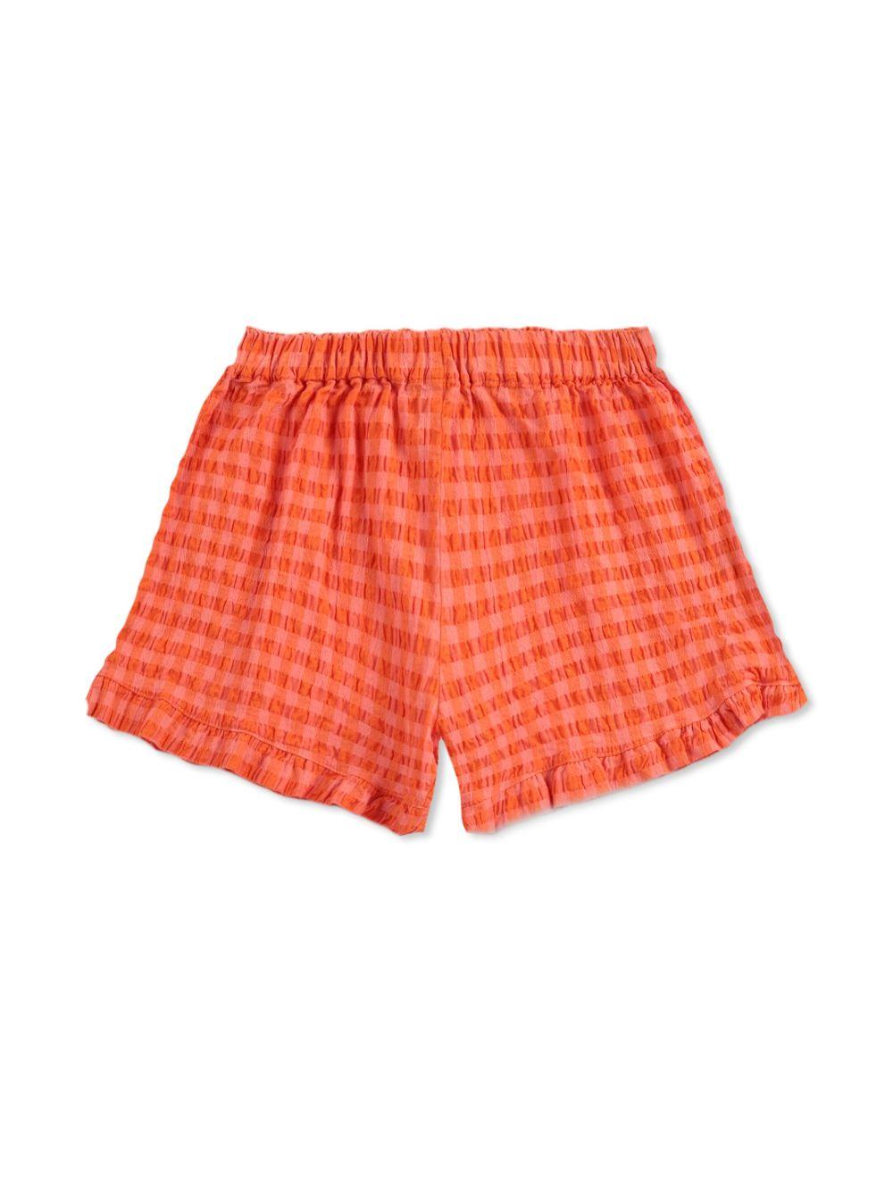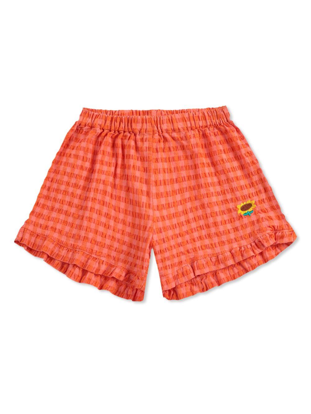 Shorts per bambina Bobo Choses Vichy arancione con rifinitura con ruches