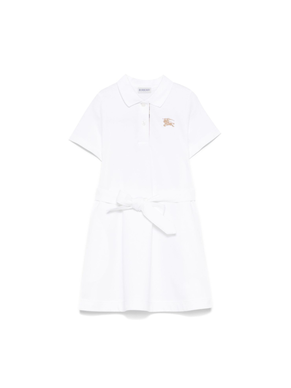 Abito per bambina Burberry Kids bianco stile polo con cintura in vita