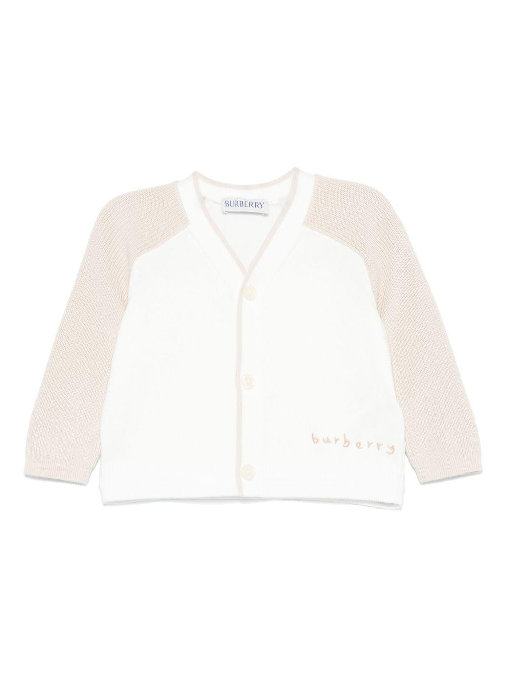 Cardigan per neonato Burberry Kids Ginny Moss bianco con maniche lunghe a contrasto
