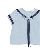 Il prodotto Camicia per neonato JESURUM BABY Ottavio azzurro con bordo a righe è disponibile sullo store online RubinoKids.com. Realizzato in Cotone 100%. Il prodotto presenta un colore azzurro cielo, chiusura frontale con abbottonatura, bordo a righe, colletto alla marinara, maniche corte. Varie taglie a catalogo, appartiene alla collezione JESURUM BABY Primavera/Estate 2025 ed è disponibile in pronta spedizione con consegna in 24/48h per l'Italia.