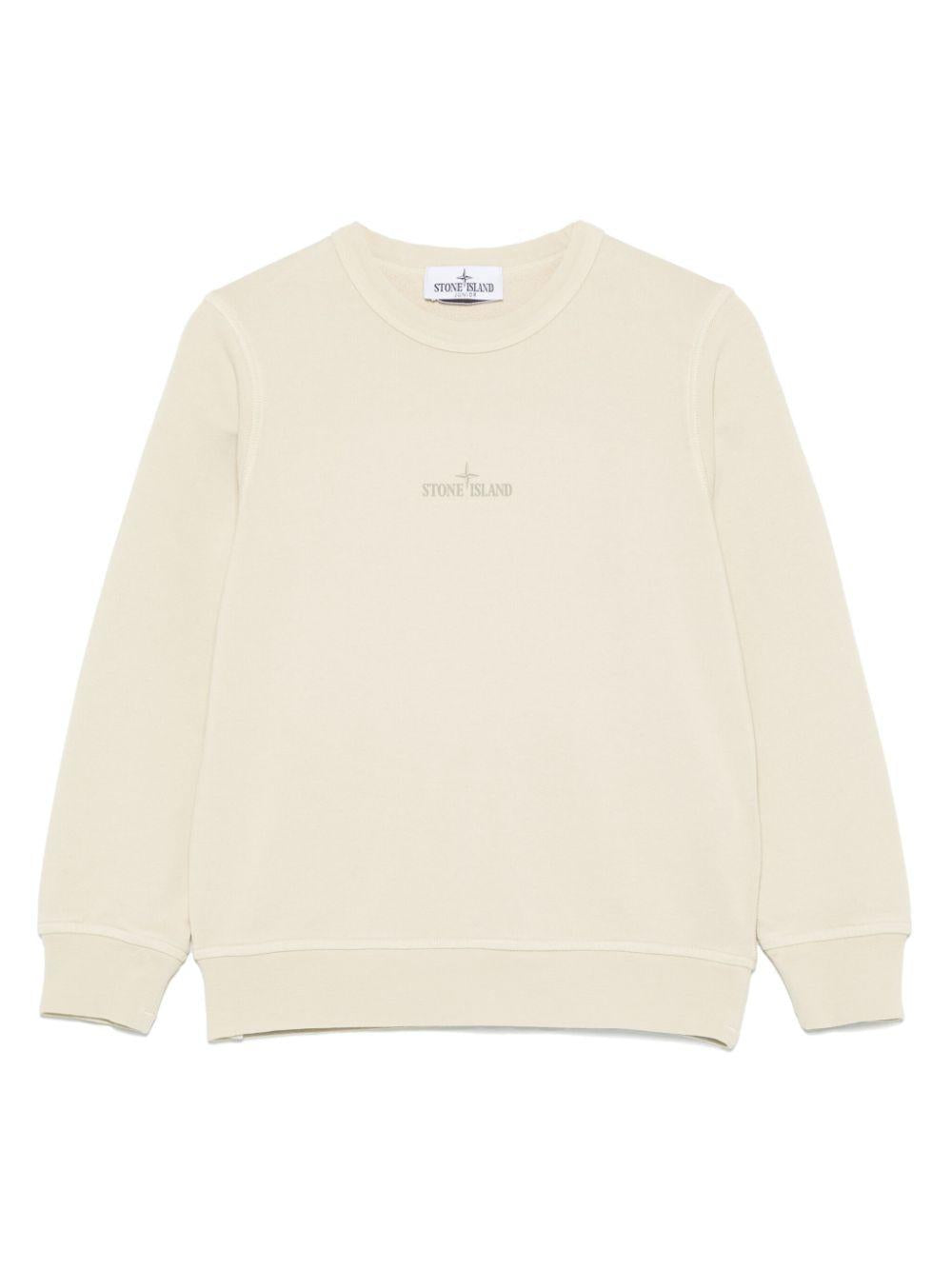 Felpa per bambino Stone Island Junior beige girocollo con stampa con logo
