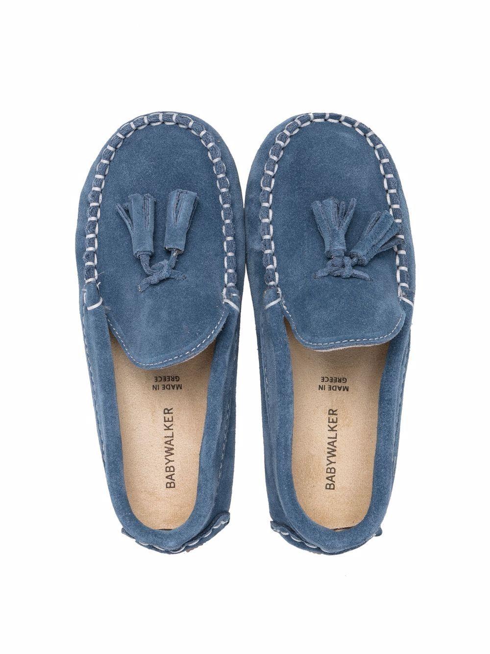 Mocassini con nappa per bambino BabyWalker blu con suola antiscivolo