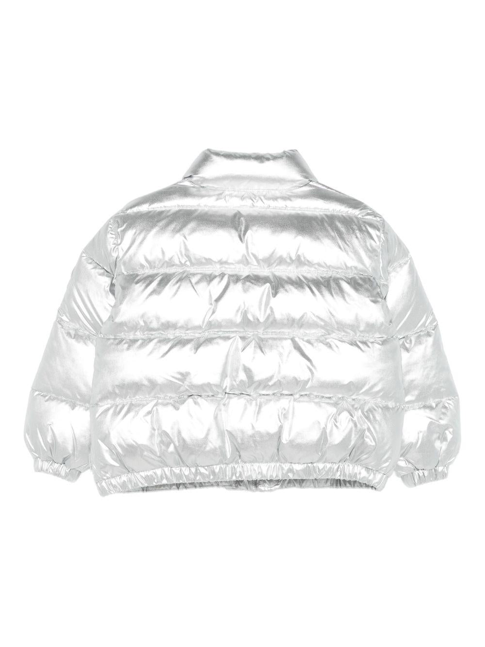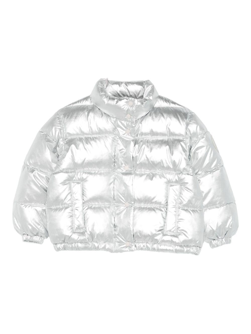Giubbino per bambina Save The Duck Kids argento con patch con logo