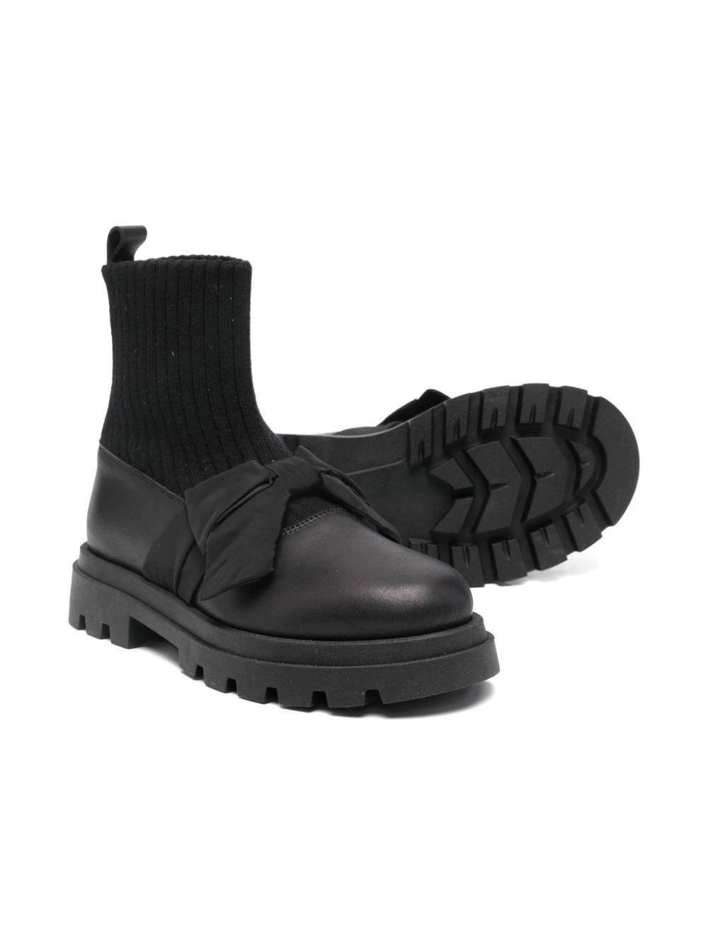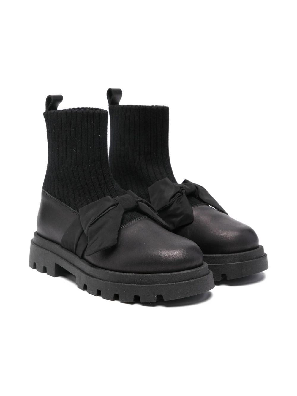Il prodotto Stivali per bambina Florens neri con fiocco sul davanti è disponibile sullo store online RubinoKids.com. Realizzato in pelle 50%, tessuto 50%. Il prodotto presenta un colore nero, linguetta posteriore, fiocco nero sul davanti, suola in gomma, lunghezza alla caviglia. Varie taglie a catalogo, appartiene alla collezione Florens Autunno/Inverno 2025 ed è disponibile in pronta spedizione con consegna in 24/48h per l'Italia.