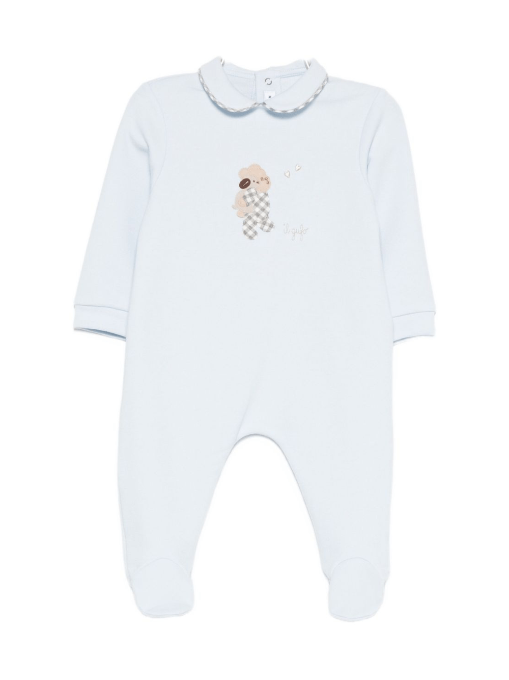 Il prodotto Tutina per neonato Il Gufo azzurra con colletto alla Peter Pan è disponibile sullo store online RubinoKids.com. Realizzato in cotone 100%. Il prodotto presenta un colore azzurro, un colletto alla Peter Pan, ricamo con animali sul davanti, gambe con piedini, maniche lughe. Varie taglie a catalogo, appartiene alla collezione Il Gufo Autunno/Inverno 2025 ed è disponibile con consegna in 24/48h per l'Italia.
