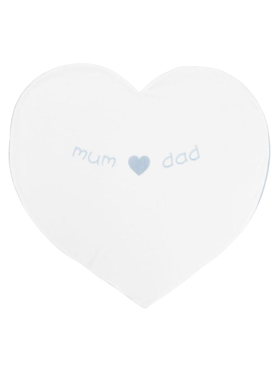 Il prodotto Coperta per neonato La Stupenderia bianca a forma di cuore è disponibile sullo store online RubinoKids.com. Realizzato in tessuto 100%. Il prodotto presenta un colore bianco, forma di cuore, ricamo in azzurro "mum cuore dad", dettagli ricamati. Appartiene alla collezione La Stupenderia Autunno/ Inverno 2025 ed è disponibile con consegna in 24/48h per l'Italia.