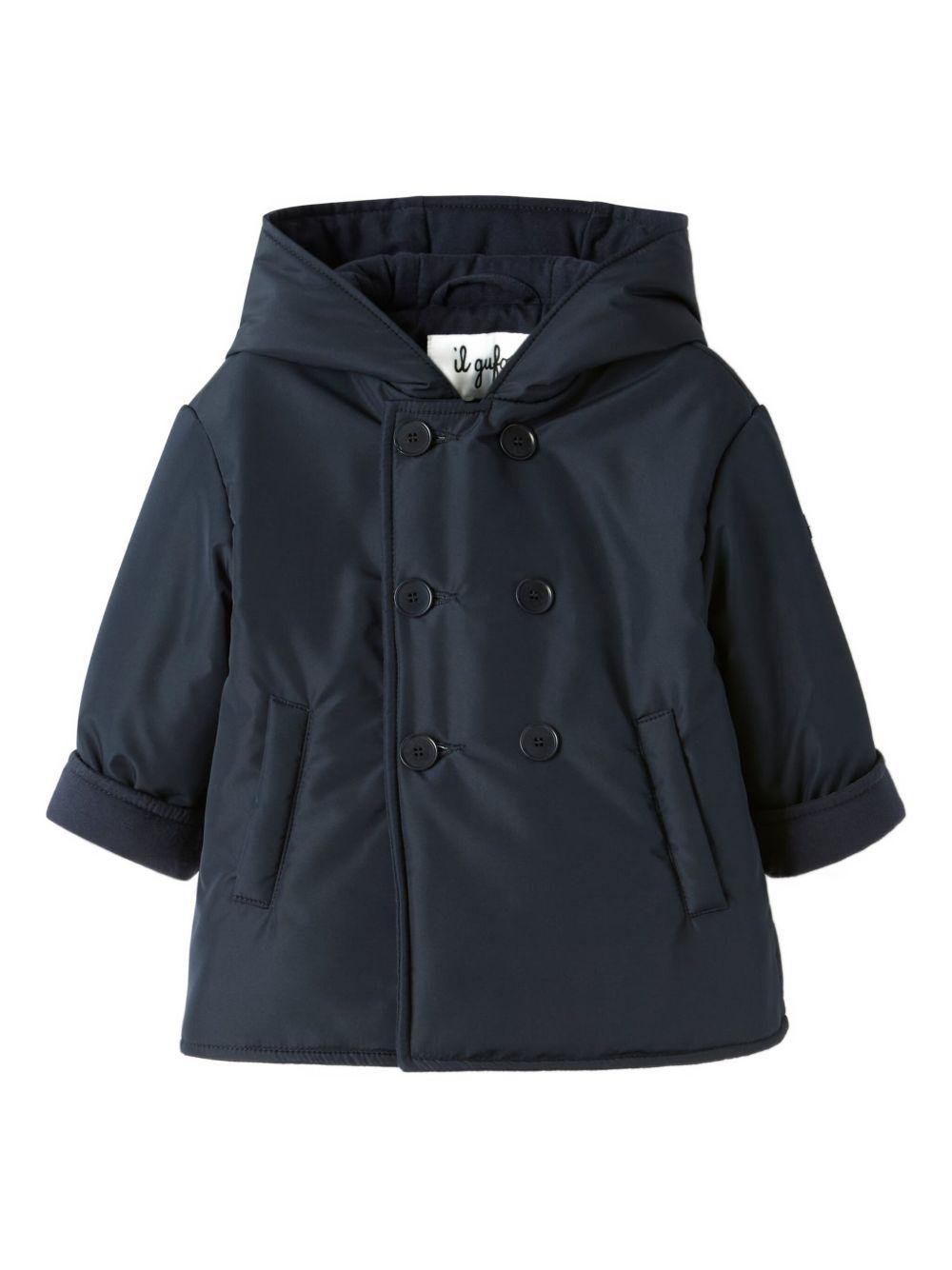 Il prodotto Giacca per neonato Il Gufo blu con cappuccio e bottoni è disponibile sullo store online RubinoKids.com. Realizzato in tessuto 100%. Il prodotto presenta un colore blu scuro, chiusura a bottoni, cappuccio, maniche con polsini, tasche ad aletta. Varie taglie a catalogo, appartiene alla collezione Il Gufo Autunno/Inverno 2025 ed è disponibile in pronta spedizione con consegna in 24/48h per l'Italia.