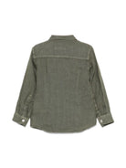 Camicia in lino per bambino Paolo Pecora Kids verde con logo ricamato